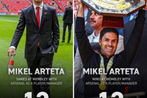 在球員時代和擔任主教練后,阿爾特塔在溫布利共參加了12場比賽,全部取得勝利。