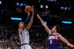 但關(guān)鍵時(shí)刻太陽前鋒弗萊明兩罰不中,給馬刺留下10.4秒的時(shí)間。文班亞馬拿到球后不慌不忙,連續(xù)假動(dòng)作找準(zhǔn)機(jī)會(huì),運(yùn)一步直接干拔出手,皮球應(yīng)聲落網(wǎng),馬刺101-100反超太陽。