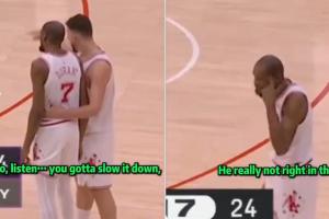 GIF-申京指點杜蘭特,杜蘭特隨后攤手+搖頭,還對場邊方向抱怨地指了指自己的頭