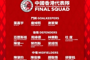 體育資訊3月20日訊 今日,中國香港代表隊公布了最新一期22人名單,他們將在3月的國際比賽日迎來與尼泊爾的熱身賽,以及與印度的亞洲杯預選賽。