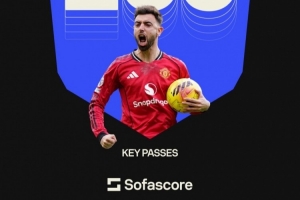 體育資訊3月21日訊 據Sofascore統計,B費本賽季英超送出100記關鍵傳球,遙遙領先其他球員,他也是本賽季五大聯賽首位關鍵傳球達到100次的球員。