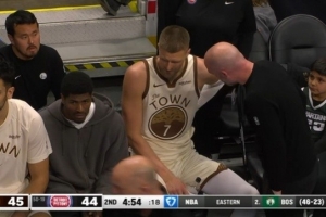 比賽上半場結束,勇士官方宣布,波爾津吉斯(下背部酸痛)本場比賽回歸成疑。