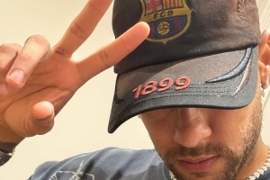 內馬爾社媒曬出照片,他的衣服和帽子上都有巴薩隊徽圖案。