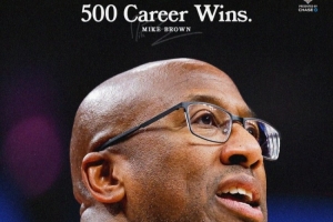 這是主教練邁克·布朗教練生涯的第500場勝利,球隊官方曬圖祝賀。