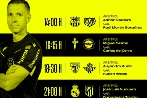 體育資訊3月21日訊 本周末,西甲第29輪全面開戰,西班牙足協官方公布了本輪比賽部分場次的裁判安排,其中,穆努埃拉執法馬德里德比關鍵戰,科爾德羅主裁巴薩主場迎戰巴列卡諾。