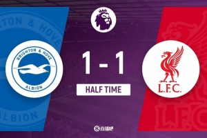 體育資訊3月21日訊 北京時間3月21日晚上20:30,英超第31輪,布萊頓坐鎮(zhèn)美國運通社區(qū)球場對陣利物浦。上半場,埃基蒂克傷停,維爾貝克破門,鄧克烏龍助攻凱爾凱茲破門。半場戰(zhàn)罷,布萊頓1-1利物浦。