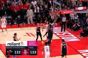 體育資訊3月22日訊 NBA常規賽,火箭123-122險勝熱火。阿門最后補籃絕殺。