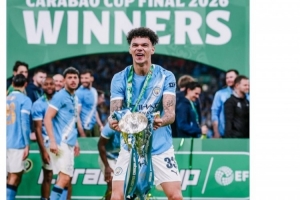 體育資訊3月23日訊 聯(lián)賽杯決賽,奧賴?yán)烽_(kāi)二度,曼城2-0擊敗阿森納,捧起冠軍獎(jiǎng)杯。