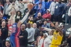 詹姆斯:“是的,我試圖越過他,也要越過馬克西(克萊伯)、杜倫、湯普森,把球傳給盧卡,有很多人要越過,他用指尖碰到了球。”