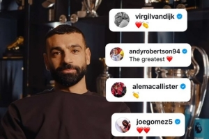 利物浦官方更新社媒動(dòng)態(tài),曬出隊(duì)友們社媒留言致敬薩拉赫的合集。
