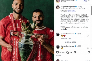 體育資訊3月25日訊 薩拉赫將在本賽季結(jié)束后離開利物浦,隊友加克波社媒發(fā)文致敬。