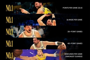 體育資訊3月25日訊 今天,湖人官方曬出了東契奇的幾項(xiàng)數(shù)據(jù)記錄,并寫道:“數(shù)據(jù)不會(huì)說謊。”詳情如下: