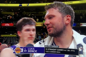 體育資訊3月26日訊 NBA常規(guī)賽,湖人客場(chǎng)137-130戰(zhàn)勝步行者。賽后東契奇接受了采訪。