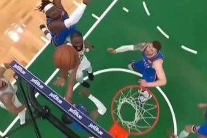 體育資訊3月27日訊 昨日綠軍119-109戰(zhàn)勝雷霆,賽后杰倫·布朗在直播時談到了本場多特對自己上籃的一次粗野防守。