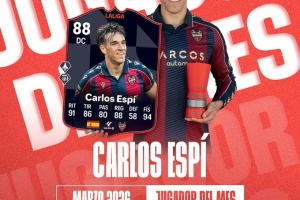 體育資訊3月28日訊 西甲官方宣布,萊萬特前鋒卡洛斯·埃斯皮當選西甲3月最佳球員。