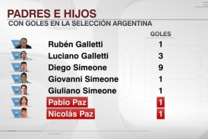 據(jù)ESPN統(tǒng)計,巴勃羅·帕斯和尼科·帕斯成為第三對為阿根廷國家隊破門的父子,此前加萊蒂父子、西蒙尼父子做到這點(diǎn)。