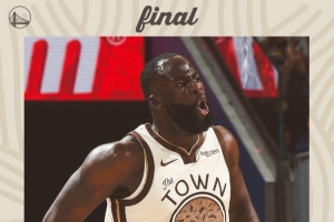 賽后,勇士官方發布贏球海報,封面為追夢怒吼瞬間。
