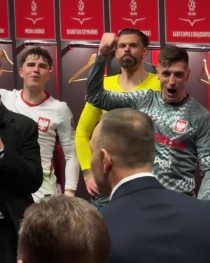 體育資訊03月28日訊 世預賽歐洲區附加賽,波蘭2-1力克阿爾巴尼亞,決賽將與瑞典爭奪一張世界杯門票。波蘭國家隊賽后發布視頻,波蘭總統納夫羅茨基來到更衣室,與球員共慶勝利。