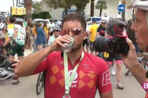 他在抵達終點后坦言:“前幾公里感覺還特別好。但最后那25公里…… 我實在是騎不動了?!?疲憊不堪的他,在高強度運動后犒勞了自己一瓶啤酒。