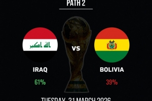 世預(yù)賽洲際附加賽:伊拉克晉級(jí)概率61%,玻利維亞39%