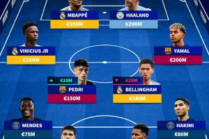 體育資訊03月29日訊 德轉盤點了最新足壇最貴陣容,總身價達14.1億歐,姆巴佩、哈蘭德、亞馬爾均2億歐。