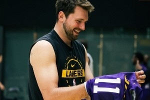 今天湖人球員們都沒(méi)有穿著各自號(hào)碼的訓(xùn)練服,而是都穿上了隊(duì)友的號(hào)碼。東契奇穿上了海斯的11號(hào),詹姆斯穿了德魯·蒂米的17號(hào),肯納德穿了東契奇的77號(hào),布朗尼穿的則是拉拉維亞的12號(hào)等等。
