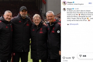 在社交媒體上,克洛普曬出了自己和達(dá)格利什、伊恩·拉什以及約翰·阿爾德里奇等3名利物浦傳奇的合影,他寫道:一個(gè)從不敢奢望的夢(mèng)想成真了,這是我人生中第一次擔(dān)任助教。能夠與伊恩·拉什和約翰·阿爾德里奇一起協(xié)助達(dá)格利什爵士,我感到非常榮幸!我希望我的表現(xiàn)還算不錯(cuò)。當(dāng)然,我們?cè)谝黄鸲冗^了很多歡樂時(shí)光。