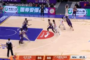 比賽最后時刻,外援威金頓籃下打進(jìn)一球,讓廣州取得2分領(lǐng)先優(yōu)勢(88-86)。