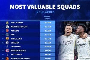全球身價最高二十隊: