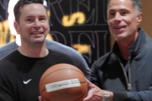 賽后湖人全體祝賀八村塁、東契奇和詹姆斯達(dá)成里程碑,而湖人總經(jīng)理佩林卡也為雷迪克準(zhǔn)備了執(zhí)教生涯100勝的驚喜,為其送上了紀(jì)念籃球,雷迪克的兒子也為其送來祝賀視頻。