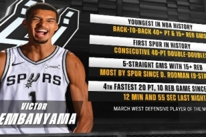 連續40+兩雙,馬刺隊史首人