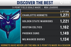 黃蜂主場迎戰步行者,轉播方給出本賽季球隊三分命中總數Top5: