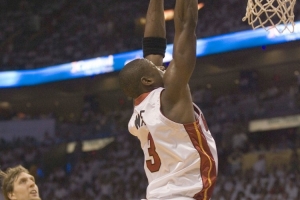 2005-06賽季季后賽,韋德為熱火隊(duì)出場23次,場均41.7分鐘,得到28.4分5.9籃板5.7助攻1.1封蓋2.2搶斷,命中率49.7%,三分命中率37.8%,罰球命中率80.8%。(該賽季季后賽打到總決賽并奪冠)