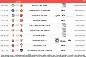 體育資訊4月4日訊 西甲官方公布了第32輪比賽的開球時間,4月25日3點貝蒂斯vs皇馬,4月25日22點15分赫塔費vs巴薩。