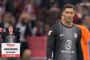 體育資訊4月5日訊 西甲第30輪焦點戰,馬競主場1-2不敵巴薩。馬競門將穆索賽后被評為本場比賽最佳球員。