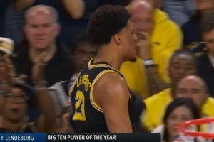 目前比賽上半場,密歇根大學主力也是熱門新秀倫德博格在對抗過程中傷到腳踝,雖然堅持罰球最終還是自己走回更衣室。