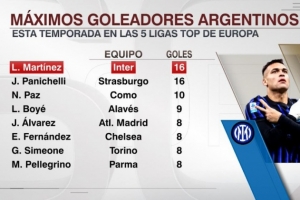 據ESPN統計,勞塔羅本賽季意甲打進16球,與帕尼切利并列五大聯賽阿根廷球員進球最多。
