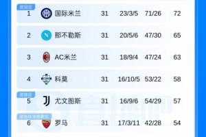 體育資訊4月7日訊 意甲第31輪,米蘭0-1客負那不勒斯遭排名反超、尤文2-0輕取熱那亞距歐冠區僅1分。最新積分榜↓