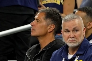 湖人總裁兼總經(jīng)理佩林卡現(xiàn)場(chǎng)觀戰(zhàn)NCAA決賽,給母校密歇根加油。