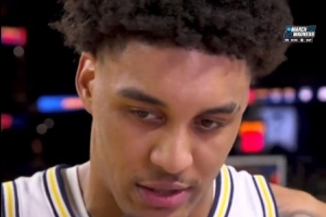 密歇根大學(xué)主力、熱門秀倫德博格在半場休息時接受了采訪。