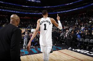 本場比賽文班亞馬開局狀態一般,失誤偏多,但下半場他狀態復蘇,第三節連續命中三分,8記三分追平生涯紀錄,最終幫助球隊贏下強敵。