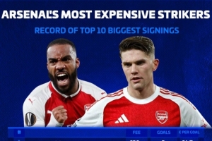 阿森納隊史前鋒最貴引援排名(每球花費,僅統計擔任中鋒或二前鋒比賽):