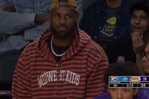 GIF-詹姆斯來到場邊