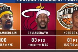 值得一提的是,在阿德巴約最后時刻逼進科比81分時,NBC切掉了凱爾特人vs馬刺的全美直播信號,轉而直播熱火對陣奇才的比賽。