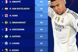 體育資訊4月9日訊 《轉會市場》統計了從未奪得歐冠冠軍的歐冠射手榜,姆巴佩領跑。