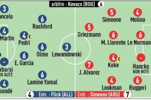 巴薩:霍安·加西亞(5分)、馬丁(4分)、孔德(4分)、佩德里(4分)、埃里克·加西亞(6分)、奧爾莫(6分)、拉什福德(6分)
