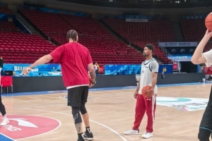賽前,北京隊眾將進行踩場訓練,四外援悉數在列,新援麥基一同亮相。