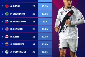 4、沃姆貝加爾(31歲):200萬(wàn)歐