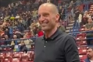 阿萊格里到了主隊贈送的一件印有1號的個性化定制球衣。期間,他還與奧林匹亞的主教練兼首席執行官埃托雷·梅西納進行了交談,后者不僅是籃壇名宿,更是一位資深的AC米蘭球迷。