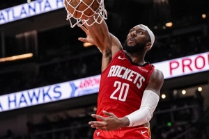 體育資訊4月10日訊 NBA常規賽,火箭半場73-56領先76人。